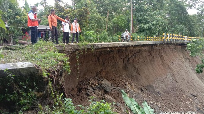 "Dampak bencana, longsor gerusan sungai Bengawan Solo mengancam ke permukiman warga bantaran sungai dan memutus akses jalan kabupaten di jalan Ngloram-Gadon," ungkap Operator Dalops Tim Reaksi Cepat (TRC) BPBD Blora Agung Triyono dilansir detikJateng, Rabu (13/3/2024).