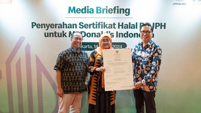 Diketahui, McDonald's Indonesia menjadi jaringan restoran cepat saji pertama yang mendapatkan sertifikat halal tersebut, yang mengacu kepada Undang-undang Nomor 6 Tahun 2023 Tentang Penetapan Peraturan Pemerintah Pengganti Undang-undang Nomor 2 Tahun 2022 Tentang Cipta Kerja Menjadi Undang-undang.