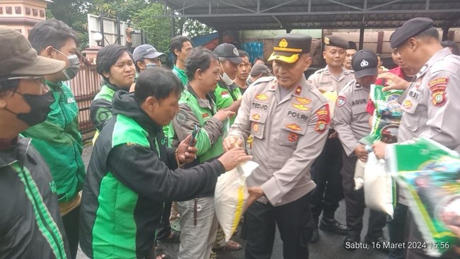 Polres Metro Jakarta Selatan (Jaksel) bersama Polsek Pesanggrahan membagikan paket sembako untuk sopir atau driver ojek online (ojol) hingga anak yatim dan kaum duafa. Kegiatan dilakukan sebagai bentuk kepedulian saat bulan Ramadan.
