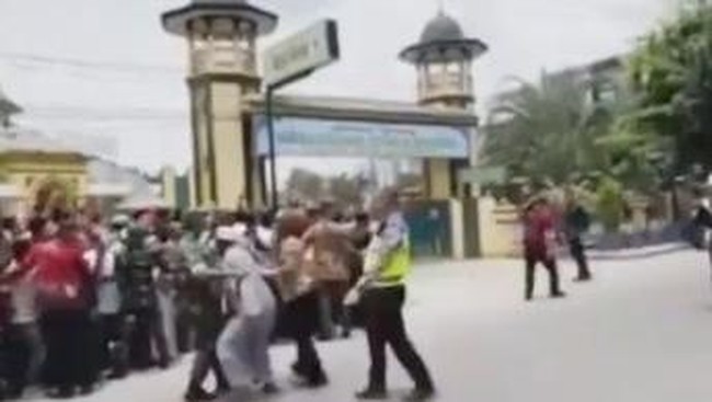 Dilihat detikcom, Senin (18/3/2024), dalam video viral yang dibagikan salah satu akun X, terlihat seorang pria berbaju abu-abu dan berpeci putih berjalan hendak menuju masjid. Pria itu lalu dihalangi seorang perempuan berbaju batik.