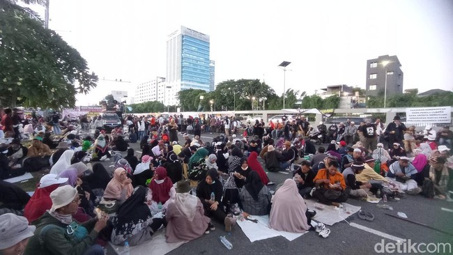 Namun, mereka yang membagikan takjil enggan menyebutkan identitasnya. Mereka mengaku pembagian konsumsi itu untuk mendukung massa aksi yang turun ke jalan hari ini.