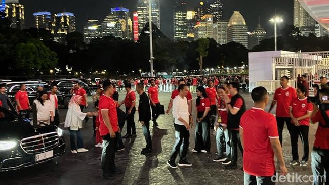 Presiden Joko Widodo (Jokowi) tiba di Gelora Bung Karno (GBK), Jakarta, untuk menonton pertandingan Timnas Indonesia vs Vietnam. Jokowi didampingi sang istri, Iriana Jokowi.