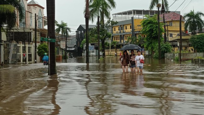 Seorang warga, Meklin (32), mengatakan penyebab banjir masih sama, yakni luapan air dari saluran air.