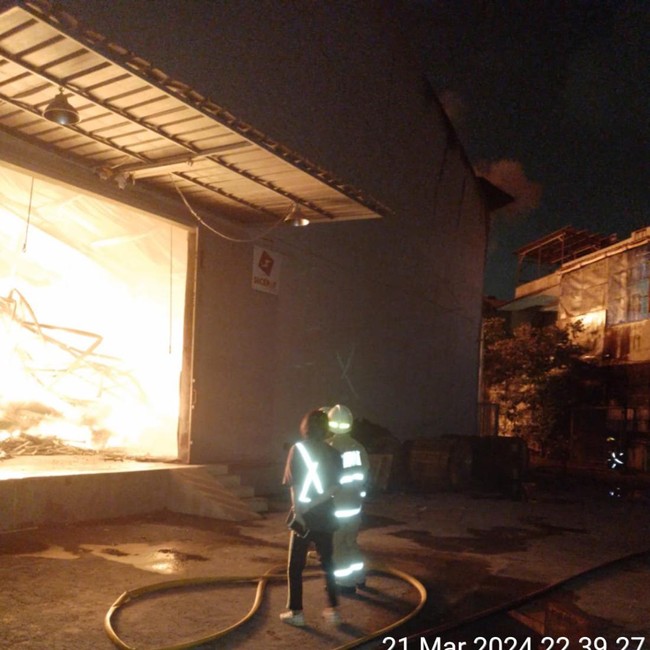 Kebakaran hebat itu terjadi pada Kamis (21/3) malam. Ada dua gudang paket ekspedisi yang terbakar.