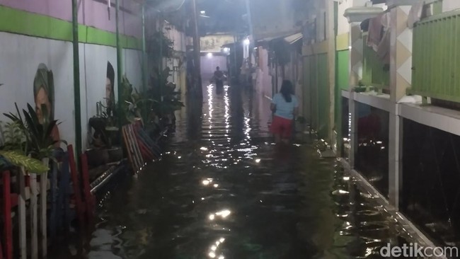 "Di rumah saya masih 60 cm, seperut saya. Makanya mau ke bawah (ke rumah) susah juga karena dalem," kata salah satu warga, Nina (50) saat ditemui di lokasi.