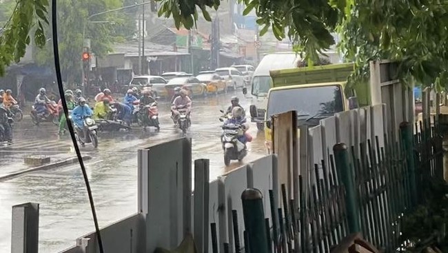 Pertigaan Jl Raya Bogor dan Jl H Bokir (Jl Raya Pondok Gede) di kawasan Hek Kramat Jati, Jakarta Timur licin karena sempat kebanjiran. Imbasnya, ada pemotor yang terjatuh karena hal tersebut.