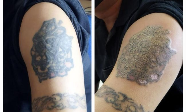 Namun terlihat ada bintik-bintik di kulit lengan Fauzi yang terkena laser hapus tato. Kulit tersebut terlihat seperti melepuh.