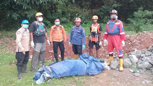 Jalaludin mengatakan korban ditemukan hari ini Jumat (29/3) atau hari ke-enam proses pencarian oleh tim SAR gabungan. Jasad korban ditemukan usai terbawa arus Sungai Cikeas sejauh 15 kilometer dari titik longsor di Desa Sentul, Kabupaten Bogor.