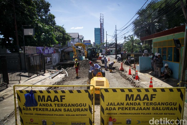 Di lokasi dekat proyek polder, Jl Nangka Raya, Tanjung Barat, Jakarta Selatan, Sabtu (30/3/2024) siang, ada Ketua RW 05 bernama Syaifudin (60) yang menceritakan bahwa belakangan ini lingkungannya malah banjir. Padahal, polder ini sejatinya dibuat untuk menanggulangi banjir.