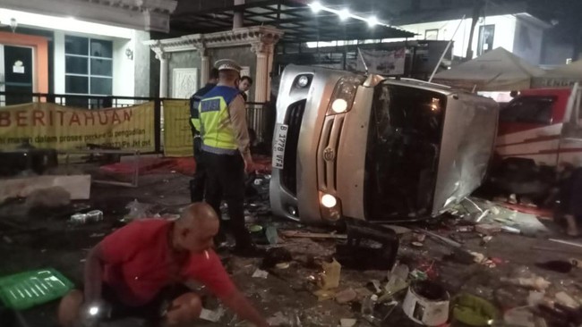 Sesampai di lokasi, mobil oleng ke kiri hingga menabrak warung dan kendaraan yang terparkir. Warung tersebut hancur akibat ditabrak pelaku.