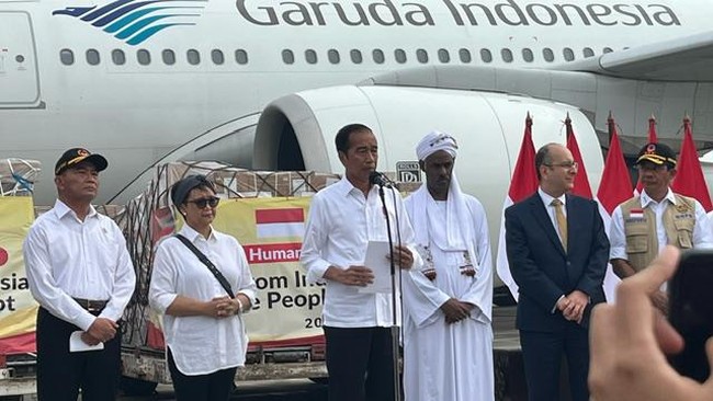 "Karena itu untuk kesekian kalinya kita kembali untuk melakukan misi kemanusiaan dengan mengirim bantuan ke Mesir dan Sudan untuk membantu saudara kita yang membutuhkan bantuan," lanjut Jokowi.