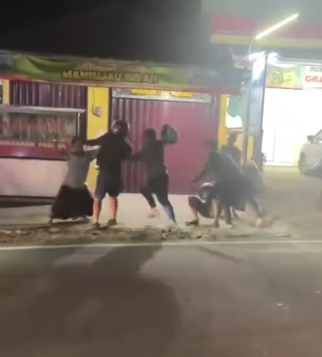 Video berdurasi 24 detik itu memperlihatkan warga yang mengenakan sarung dipukuli oleh lima orang. Warga tersebut terlihat dipukuli menggunakan helm.