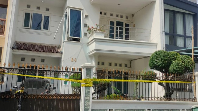 Ditipidnarkoba Bareskrim Polri menggerebek pabrik ekstasi rumahan milik Fredy Pratama di Sunter, Jakarta Utara (Jakut). Terlihat rumah itu telah dipasang garis polisi.