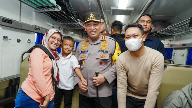 Usai itu, Jenderal Sigit kembali berjalan mengintari gerbong kerta. Dia juga menayai destinasi penumpang lainnya.