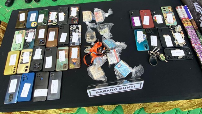 Barang bukti yang disita polisi dari 71 ABG dan pemuda itu di antaranya 60 unit ponsel, 22 bendera, 28 motor, 13 petasan, 1 lampu lalu lintas, 1 botol miras jenis ciu. Seluruh ABG dan pemuda yang tak terindikasi mengonsumsi narkoba pun dipulangkan ke keluarga masing-masing.