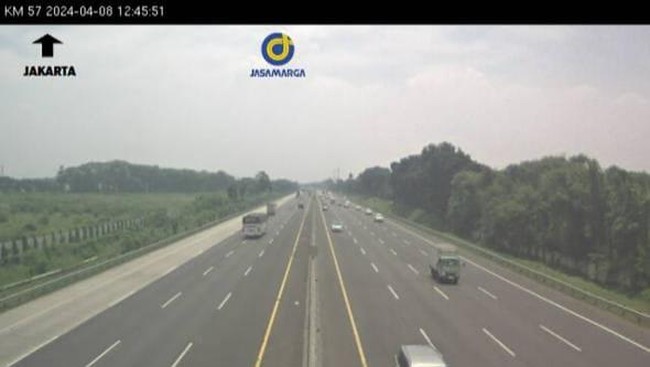 Pantauan detikcom lewat aplikasi Travoy, Senin (8/4/2024), sekitar pukul 12.58 WIB, terlihat ruas jalan Tol Jakarta-Cikampek lancar di Km 58. Kondisi lalu lintas yang lancar ini juga telah terlihat sejak Km 57.