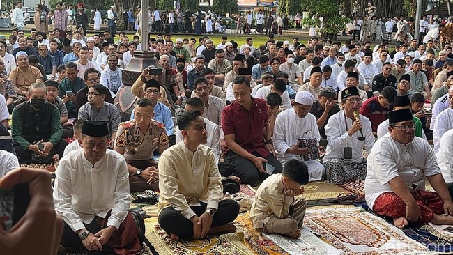 Sedangkan Selvi dan putrinya La Lembah Manah berada di barisan perempuan. Salat Id di halaman Balai Kota Solo juga dihadiri oleh Wakil Wali Kota Solo Teguh Prakosa dan forkopimda Kota Solo.