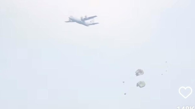 "Dengan berat masing-masing 160 kilogram. Jadi total logistik yang berhasil sampai di drop zone Gaza adalah sebanyak 3.200 kilogram yang berisi makanan dan obat-obatan yang dibutuhkan oleh saudara-saudara kita yang ada di pengungsian," rincinya.