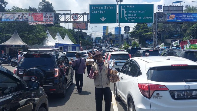 Kemacetan di kawasan Puncak, Bogor, Jawa Barat, menjadi berkah bagi sebagian warga, khususnya para pedagang. Mereka mengaku meraup untung berkali-kali lipat karena banyak pengendara yang terjebak macet membeli dagangannya.