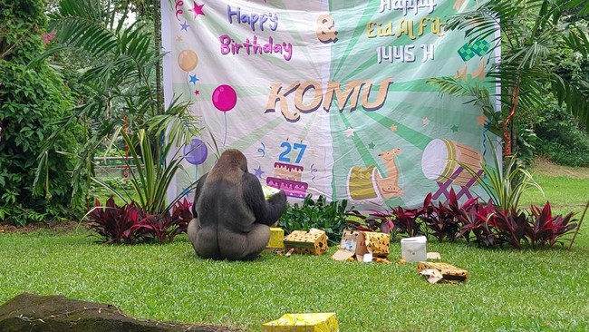 Taman Margasatwa Ragunan merayakan ulang tahun (ultah) ke-27 tahun Gorila bernama Komu. Ulang tahun Komu sengaja dirayakan untuk menyampaikan pesan agar para pengunjung menyayangi satwa liar.