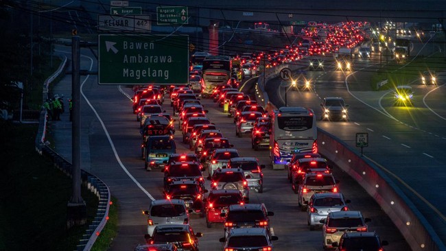 "22.54 WIB #Tol_Semarang_Solo Susukan KM 471 - KM 468 arah Bawen PADAT, kepadatan volume lalin," tulis @PTJASAMARGA melalui akun X-nya seperti dilihat detikcom.