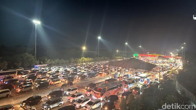 Pantauan detikcom di lokasi, Senin (15/4/2024) sekitar pukul 18.25 WIB, mobil hanya bisa melaju pelan maksimal 20 km (kilometer) per jam. Kendaraan lebih sering berhenti karena padatnya arus.