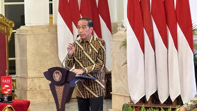 "Ucapan terima kasih atas kerja keras PPATK, kementerian, dan lembaga sehingga Indonesia telah menjadi anggota penuh dari Financial Action Task Force (FATF) on Money Laundering and Terrorism Financing mulai Oktober 2023," ujar Jokowi di Istana Negara, Rabu (17/4/2024).