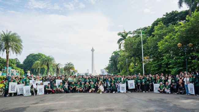 Komunitas Relawan GEN-B bersama Unit Kegiatan Mahasiswa (UKM) Heuri Cosmos (HC) Universitas Pertamina dan IESR yang didukung oleh JK International menggelar kegiatan jalan santai di Jakarta Pusat bersama 350 orang relawan.