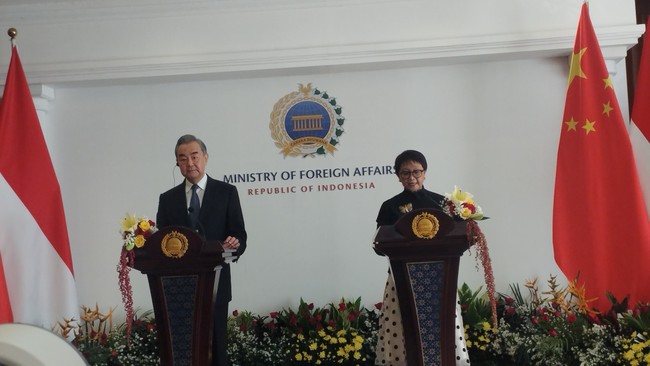 Menteri Luar Negeri China Wang Yi bertemu dengan Menlu Indonesia Retno Marsudi. Keduanya membahas soal situasi di Timur Tengah yang memanas.