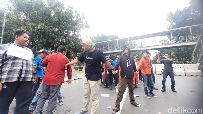 Massa yang menggelar aksi berasal dari Gerakan Mahasiswa dan Pemuda Nusantara (GMPN) dan Komite Aksi Mahasiswa dan Pemuda untuk Demokrasi (Kampud). Pantauan di lokasi, Kamis (18/4/2024), massa menggelar teatrikal tentang simbol rakyat melindungi hakim MK.