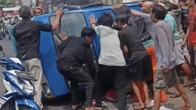 Video kejadian ini viral di media sosial. Dari video yang dilihat detikcom, Kamis (18/4/2024), angkot terguling setelah ditabrak. Warga sekitar kemudian beramai-ramai mengevakuasi angkot yang terguling.