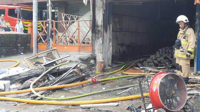 Api di toko bingkai di Jalan Mampang Prapatan, Jakarta Selatan, telah padam. Lalu lintas Kuningan menuju Jalan Warung Buncit yang semula ditutup kini telah dibuka kembali.