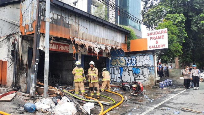 Kebakaran terjadi di sebuah toko bingkai di Jalan Mampang Prapatan, Jakarta Selatan. Kebakaran dilaporkan terjadi pada Kamis (18/4), pukul 19.24 WIB.