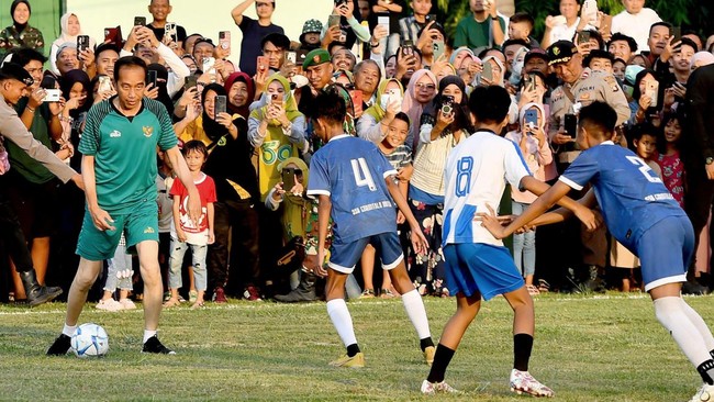 Masyarakat Gorontalo pun menyambut dengan hangat dan riuh saat Presiden Jokowi memasuki lapangan bola untuk turut serta bermain. Atmosfer sore tadi pun terasa makin meriah.