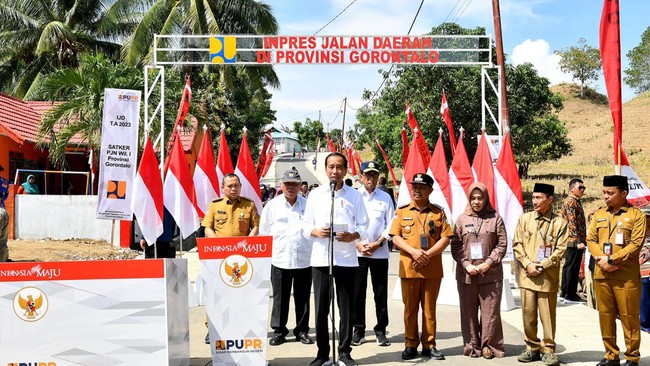 Presiden Joko Widodo (Jokowi) meresmikan pelaksanaan Instruksi Presiden (Inpres) Jalan Daerah di Gorontalo. Jalan dengan panjang 46 km itu menghabiskan anggaran Rp 161 miliar.