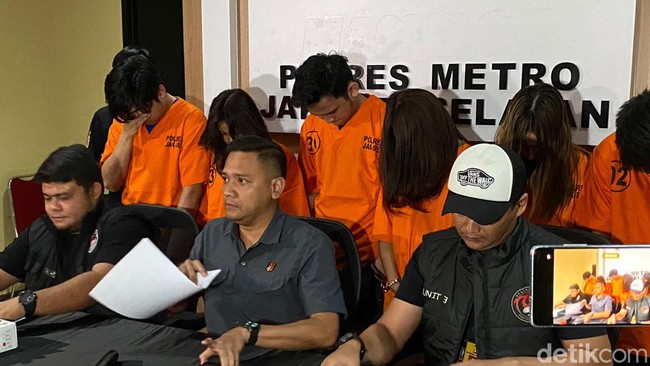 "AT (24) perempuan, MJ (22) perempuan, AMO (22) laki-laki, inisial CK (20) perempuan, BB (25) laki-laki, AJ (27) laki-laki. Betul CK (Chandrika Chika)," kata Wakasat Narkoba Polres Metro Jakarta Selatan AKP Rezka Anugras di kantornya, Jl Wijaya II, Jakarta, Selasa (23/4/2024).