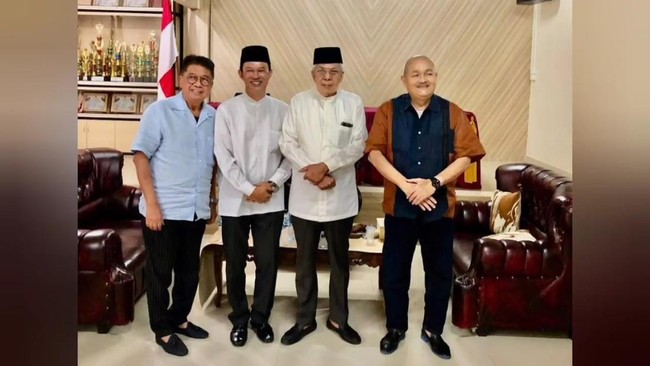 Foto bakal calon Gubernur Sumatera Selatan, Mawardi Yahya, dan wakilnya, Harnojoyo, (Mahar) saat mengunjungi Alex Noerdin di Rutan Kelas I (Pakjo) Palembang beredar di media sosial. Kadivpas Kemenkumham Sumsel Mulyadi mengatakan foto tersebut diabadikan petugas rutan.