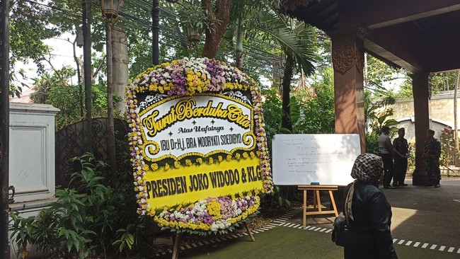 Karangan bunga dukacita juga terus berdatangan ke rumah duka. Satu karangan bunga dukacita itu berasal dari Presiden Joko Widodo (Jokowi). Ada juga karangan bunga dari Pj Gubernur DKI Jakarta Heru Budi Hartono hingga Wakil Ketua MPR RI Hidayat Nur Wahid (HNW).