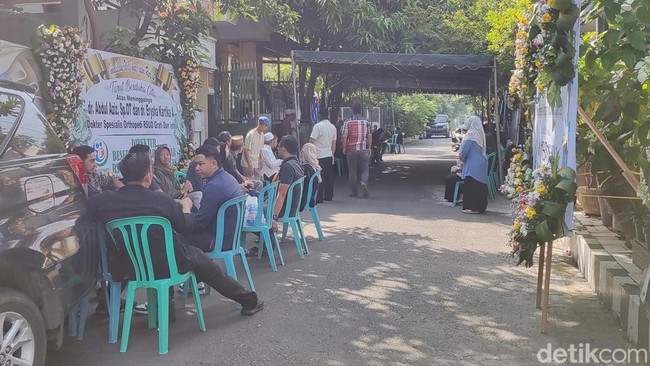 Rumah dr Abdul Aziz dan istrinya, Erysha Kartika, korban kecelakaan rombongan Harley-Davidson, dipenuhi pelayat. Karangan bunga juga terlihat memenuhi pekarangan rumah duka.