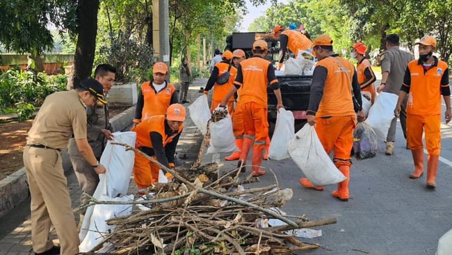 Dia mengatakan masing-masing petugas melakukan bersih-bersih sesuai tugas dan fungsinya. Sudis Pertamanan dan Hutan Kota Jakbar memangkas dahan pohon. Kemudian, petugas Sudis Bina Marga melakukan penggantian lampu PJU yang mati.