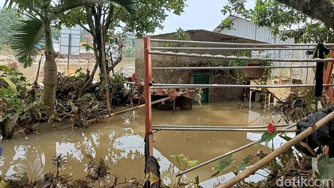 "Saat hujan turun seperti tadi malam, air setinggi 1,5 meter masuk ke rumah. Barang jadi kerendam semua, hancur," kata Karno saat ditemui detikcom, Rabu (1/4/2024).