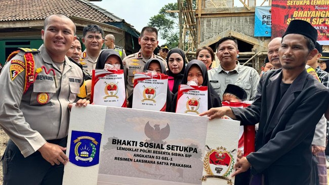 Bakti sosial Setukpa Lemdiklat Polri bersama Bhayangkari Cabang 04 Setukpa dan siswa Sekolah Inspektur Polisi (SIP) angkatan ke-53 gelombang I tahun 2024 Resimen Laksmana Satya Prakasha (LSP - 53). Selain makanan dan alat tulis, material bangunan turut dibagikan untuk pembangunan madrasah Alhidayah yang berlokasi di Kampung Cibeurih.