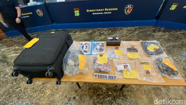Pantauan detikcom, Jumat (3/5/2024) barang bukti tersebut digelar jelang konferensi pers di gedung Ditreskrimum Polda Metro Jaya. Ada beberapa barang bukti yang digelar di sana.