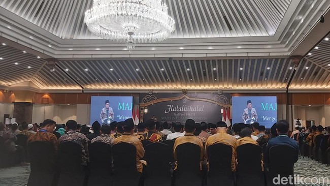 Acara digelar di Hotel Grand Sahid Jaya, Jakarta, Selasa (7/5/2024). Acara halalbihalal MUI ini mengangkat tema 'Menguatkan Solidaritas Umat demi Kemajuan Bangsa'.