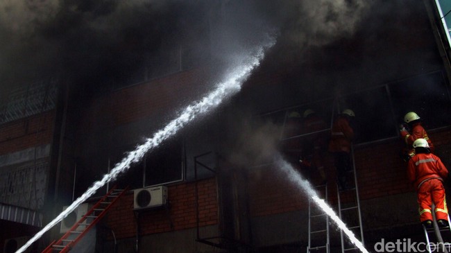 Puluhan personel damkar dikerahkan ke lokasi untuk memadamkan kebakaran itu. Dalam video beredar, tampak asap hitam membubung tinggi dari lokasi kebakaran itu.