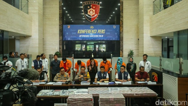"Pada 25 April 2024, penyidik Direktorat Siber Bareskrim Polri menangkap lima orang tersangka yang terdiri dari 4 laki-laki dan 1 wanita," ucap Dirtipid Siber Bareskrim Polri Brigjen Himawan Bayu Aji dalam jumpa pers di Mabes Polri, Jakarta, Selasa (7/5/2024).