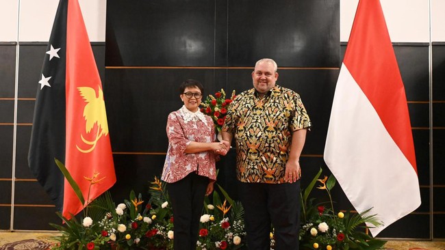 "Sebagai tetangga dekat, PNG adalah mitra alami bagi Indonesia. Menteri Tkatchenko, kita menulis sejarah hari ini. Ini untuk pertama kalinya pertemuan bilateral antara Menteri Luar Negeri Indonesia dan PNG berlangsung di Jayapura. Kami berbagi perbatasan darat yang luas tidak jauh dari sini, lebih dari seratus kilometer," kata Retno dalam jumpa pers secara virtual, Rabu (8/5/2024).