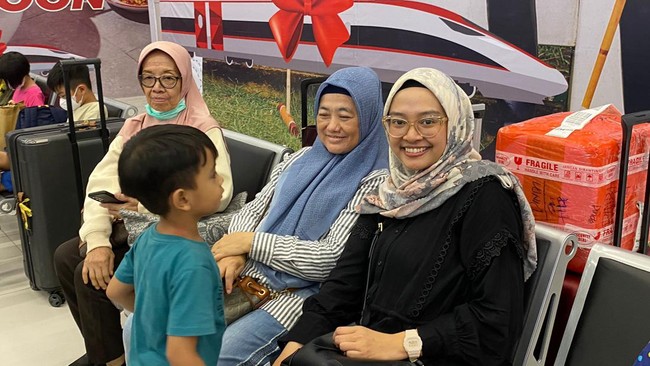 Mta bersama keluarga sengaja menempuh jalur udara lalu darat demi mencoba kereta cepat Whoosh. "Emang sengaja dari Jawa Timur naik pesawat terus naik ini karena emang sengaja mau nyobain kereta cepat ini," katanya.
