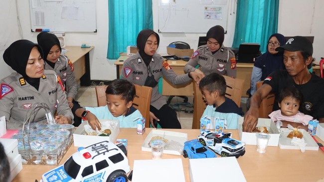 "Alhamdulillah, bersama perangkat desa, tim dari Polres Metro Depok bertemu dengan ayah, anak tersebut, dan dua adiknya. Oleh tim Polwan dibawakan makanan, susu, diajak bermain, diberikan mainan kepada Ananda Gibran serta kedua adiknya," ujar Arya.