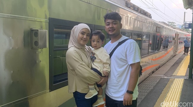 "Suami, aku, sama Dedek mau ke Madiun. Suami lagi libur, jadi diajak ke sana, biar Dedek kenal juga apa kereta api gitu, he-he-he...," kata Shinta.